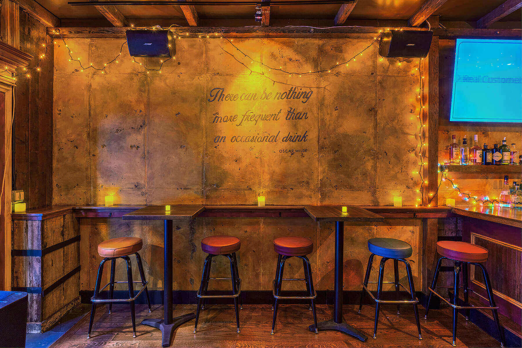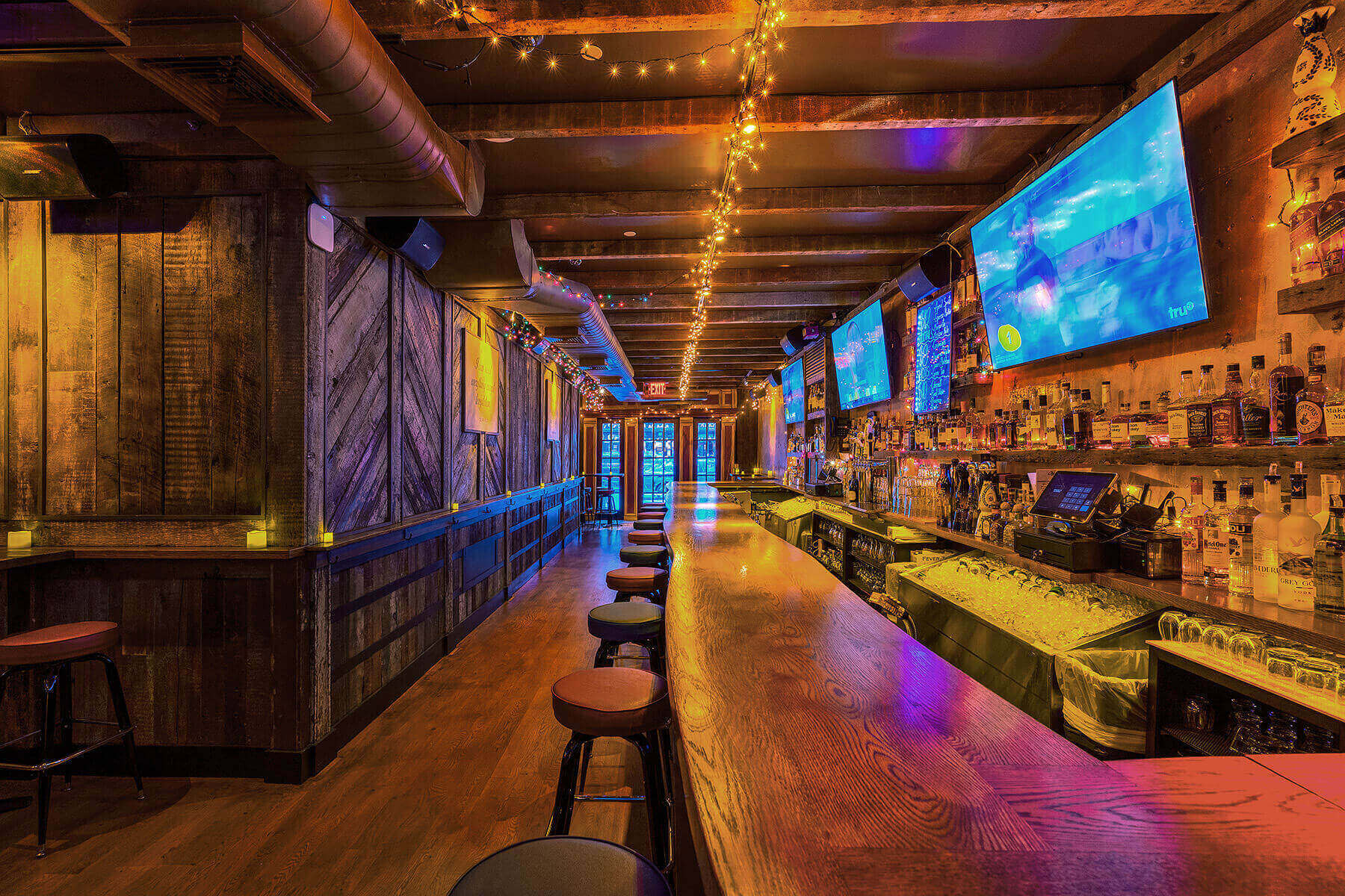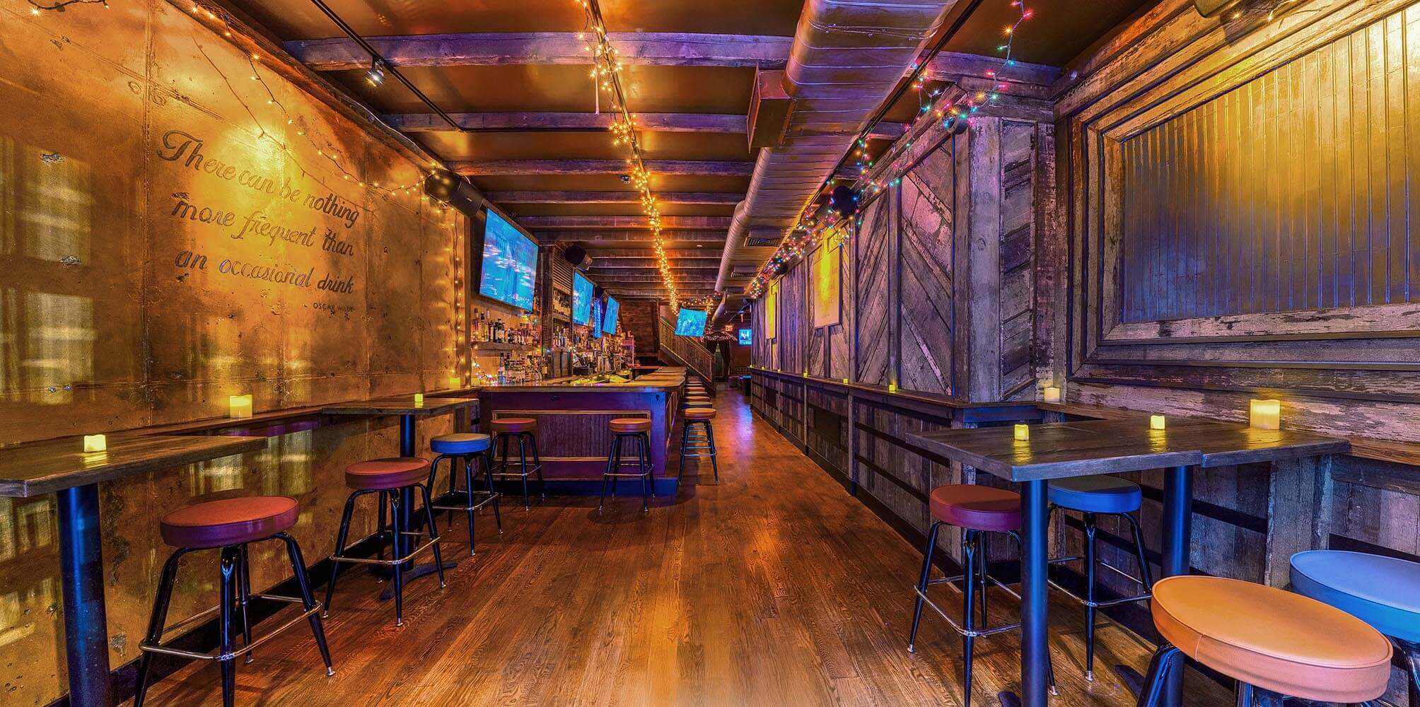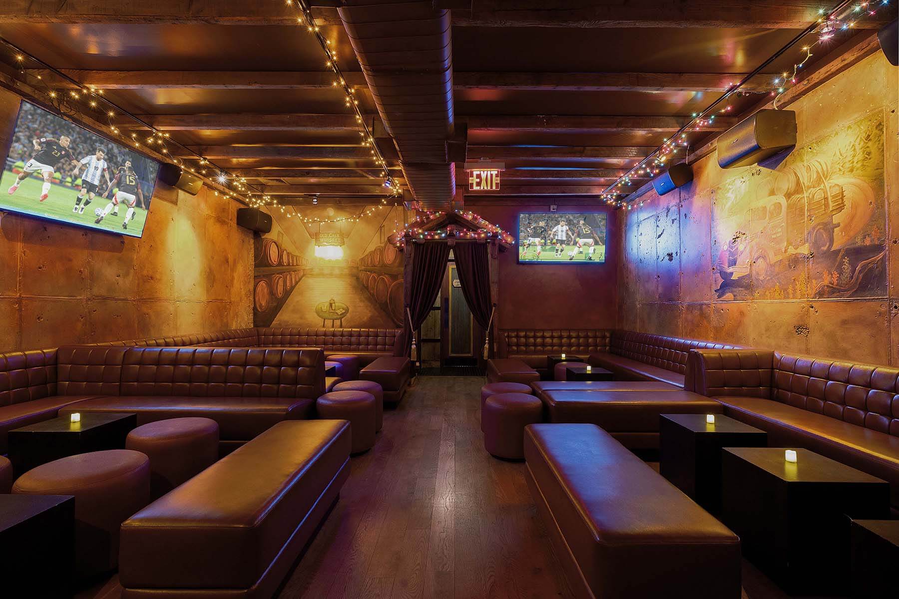 Experience ultimate relaxation in our lounge surrounded by HD Tv's where plush leather couches and a cozy-chic atmosphere create the perfect backdrop for your evening. No need to wait for Happy Hour. We offer specials on cocktails, shots, and wine all day, every day. Join us to enjoy great vibes and catch all your favorite sports games.